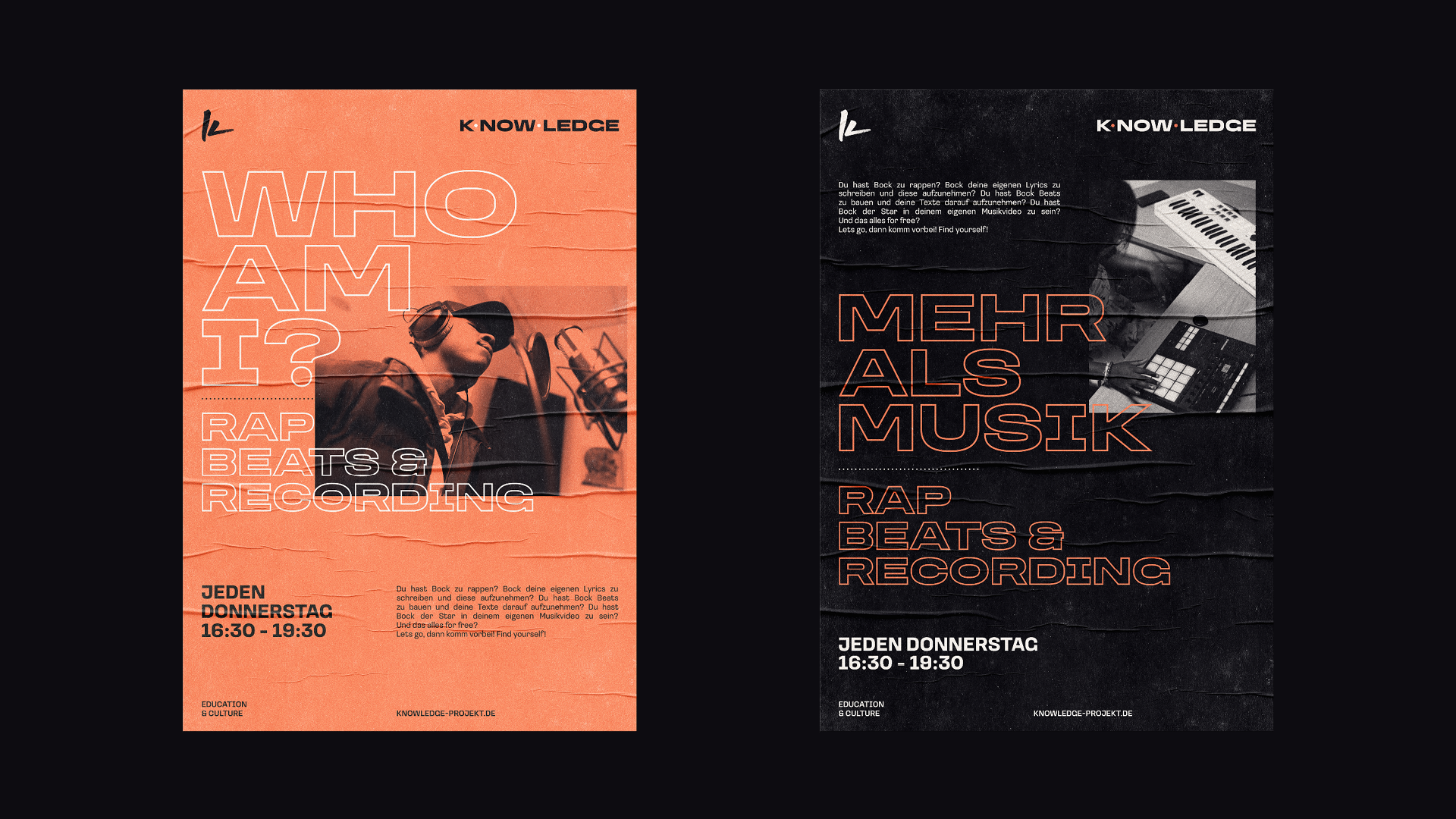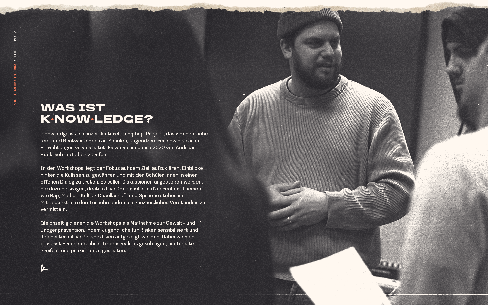k·now·ledge ist ein sozial-kulturelles Hiphop-Projekt, das wöchentliche Rap- und Beatworkshops an Schulen, Jugendzentren sowie sozialen Einrichtungen veranstaltet. 2025 feierte k·now·ledge sein fünfjähriges Jubiläum. Aus diesem Anlass gab es den Wunsch, das bestehende Corporate Design zu überarbeiten, um dem Projekt eine eigenständigere Identität zu verleihen.